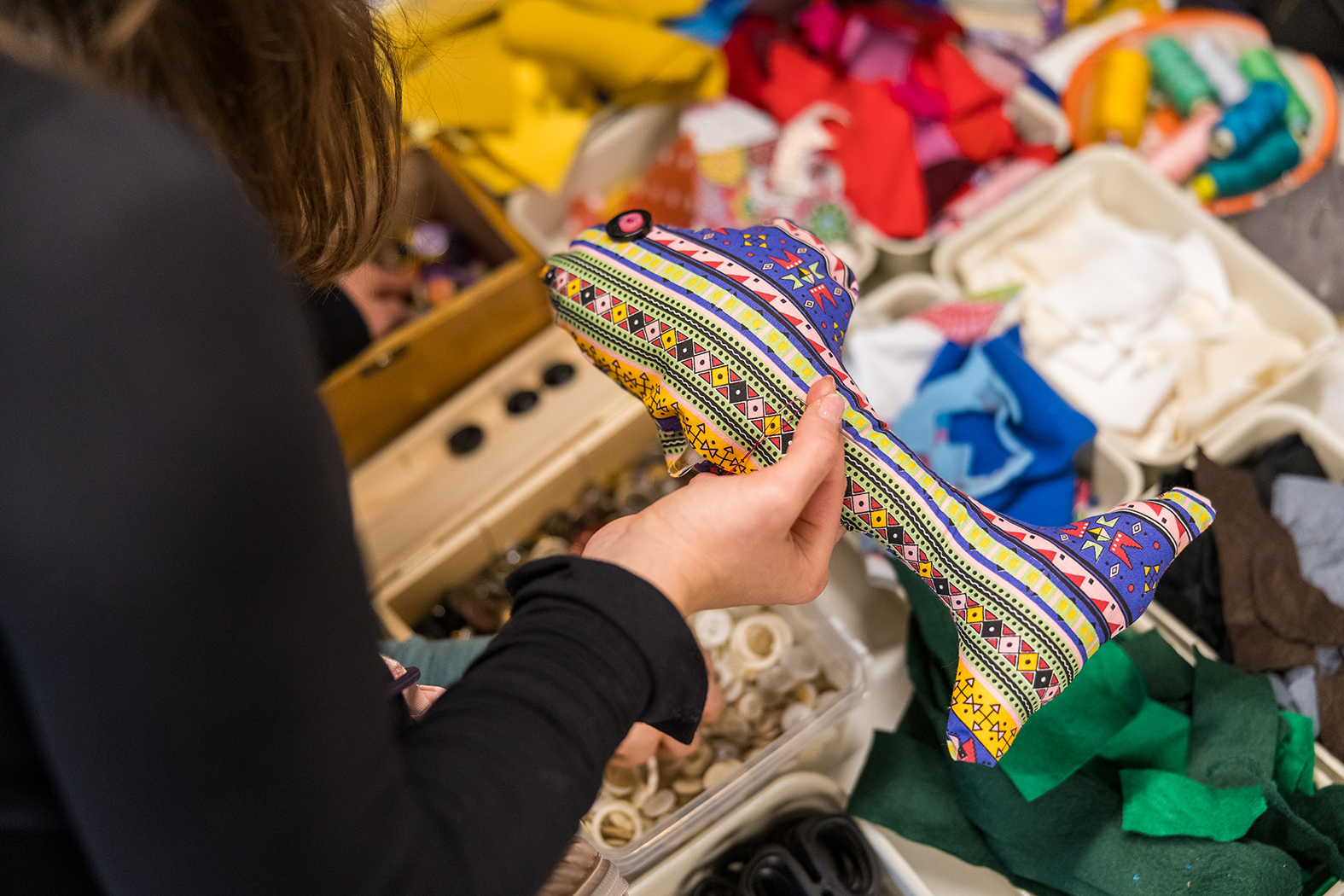 Heb je een lievelingstrui die niet meer past? Of een ander oud ongedragen kledingstuk? Niet weggooien: in deze workshop maak je er zelf een knuffel van!